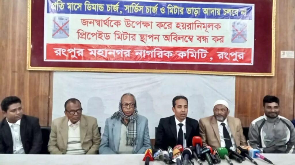 রংপুর ব্যুরো: প্রিপেইড মিটার স্থাপন বন্ধের দাবিতে সংবাদ সম্মেলন করেছে রংপুর মহানগর নাগরিক কমিটি। গতকাল বৃহস্পতিবার (৯ ডিসেম্বর) দুপুরে নগরীর টাউনহলস্থ রঙ্গপুর সাহিত্য পরিষদে আয়োজিত সংবাদ সম্মেলনে নাগরিক কমিটির মহানগর সদস্য সচিব এড. পলাশ কান্তি নাগ লিখিত বক্তব্য পাঠ করেন।