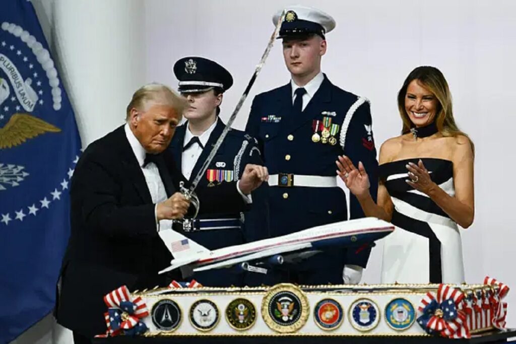 ঢাউস কেক কাটলেন, তলোয়ার হাতে গানের তালে নাচলেন ট্রাম্প ও মেলানিয়া