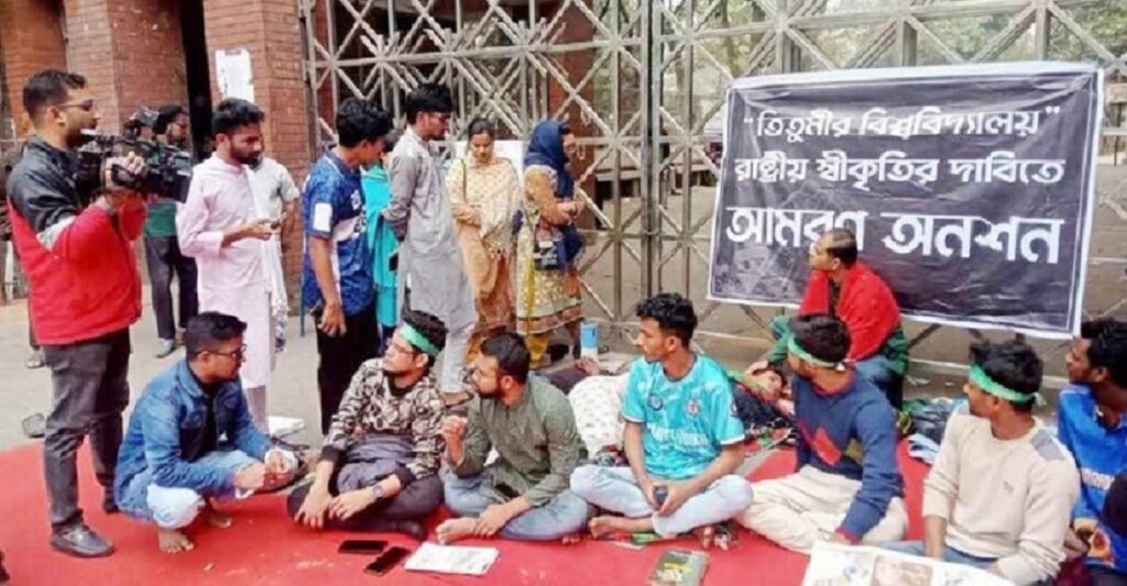 সরকারি তিতুমীর কলেজ স্বতন্ত্র বিশ্ববিদ্যালয় রূপান্তরের এক দফা দাবিতে অনশন করছেন শিক্ষার্থীরা
