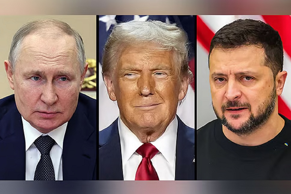 রাশিয়ার প্রেসিডেন্ট ভ্লাদিমির পুতিন, যুক্তরাষ্ট্রের প্রেসিডেন্ট ডোনাল্ড ট্রাম্প এবং ইউক্রেনের প্রেসিডেন্ট ভলোদিমির জেলেনস্কিফাইল ছবি: এএফপি