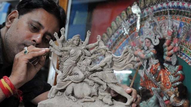 ৬ অক্টোবর শুরু হচ্ছে দুর্গাপূজা। শেষ সময়ে রঙ তুলির আঁচড়ে প্রতিমা সাজাতে তাই দারুণ ব্যস্ত প্রতিমা শিল্পীরা। পুরান ঢাকার শাঁখারিবাজার, নর্থব্রুক হল রোড, শ্রী শ্রী কালী মন্দিরসহ বেশ কয়েকটি জায়গায় শতাধিক শিল্পী গত একমাস ধরেই প্রতিমা তৈরি করে চলেছেন। তাদেরই একজন পল্টন পাল। বয়স ষাটের কাছাকাছি। থাকেন পুরান ঢাকার শাঁখারিবাজারে। শৈশব থেকেই নাকি তিনি প্রতিমা সাজিয়ে আসছেন। পল্টন বললেন, ‘পিতার কাছ থেকে প্রতিমা তৈরি শিখেছি। বংশ পরম্পরায় প্রতিমা তৈরি করে আসছি। প্রতিমাই আমার জীবিকা। সারা বছর টুকটাক অন্যান্য প্রতিমা তৈরি করলেও মূলত দুর্গাপূজাকে ঘিরেই চলে আমাদের সারা বছর। এবারও ভালো অর্ডার পেয়েছি। যে প্রতিমা তৈরির জন্য ২৫-৩০ হাজার টাকা পাই, তাতে লাভ থাকে ৫-১০ হাজার টাকা। এতে পরিশ্রম আছে বেশ। গত এক মাস রাত-দিন কাজ করে যাচ্ছি। আরেক প্রতিমা শিল্পী বলাই পাল (৪৫) বলেন, ‘২০ বছর ধরে প্রতিমা তৈরি করছি। এটা বাবার কাছ থেকে শিখেছি। পূর্বপুরুষেরাও এই কাজ করতেন। বছরের এ সময়টা আমাদের ব্যস্ততার সময়। এক মিনিট অপচয় করার সুযোগ নেই। গতবছর করোনার সময়টা আমাদের মতো প্রতিমা শিল্পীদের বেশ কষ্টে কেটেছিল। এবার ঈশ্বরের আশীর্বাদে সুসময় ফিরেছে। এখন পর্যন্ত দেড় লাখ টাকার অর্ডার পেয়েছি। সাধারণত ১০ থেকে ১৫ ধরনের প্রতিমা তৈরি করে থাকি।’ শিল্পীদের সঙ্গে কথা বলে জানা গেলো, ‘প্রতিমা তৈরির মূল কাঁচামাল মাটি, খড়, লাঠি অথবা বাঁশ। সঙ্গে বিপুল পরিমাণ পানিও লাগে। কিন্তু দুর্গা নির্মাণ করতে বিশেষ পদ্ধতি প্রয়োগ করা হয়। দুর্গার জন্য গঙ্গা মাটি, গোবর ও গোমূত্রও ব্যবহার করা হয়। প্রতিমা তৈরির ধাপ সম্পর্কে জানতে চাওয়া হয় পল্টন পালের কাছে। তিনি জানান, প্রথমে মূর্তির আকৃতি অনুযায়ী লাঠি বা বাঁশ নেওয়া হয়। পরে সেটার ওপর মাটি ও গো-মূত্রের সংমিশ্রণে খড়ের আস্তর দেওয়া হয়। পরে পরিমাণ অনুযায়ী পানি দিয়ে মূর্তির আদল দেওয়া হয়। অনেকেই মনে করে থাকনে, প্রতিমা তৈরী করতে হলে পতিতালয়ের মাটি ব্যবহার করতে হয়। তবে এটি এখন আর প্রচলিত নয়। প্রতিমা তৈরির জন্য বাংলাদেশের বিভিন্ন অঞ্চল থেকে খড় ও মাটি সংগ্রহ করা হয়। এর মধ্যে ময়মনসিংহ, রাজশাহী, বগুড়া ও নোয়াখালী অন্যতম।
