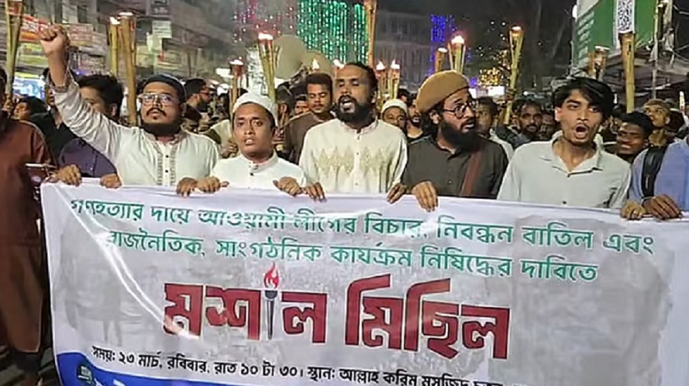 বিজ্ঞপ্তিতে বলা হয়, সমাবেশ শেষে মশাল মিছিলটি আল্লাহ করিম মসজিদ মোড় থেকে আসাদ গেট পর্যন্ত সড়ক প্রদক্ষিণ করে।