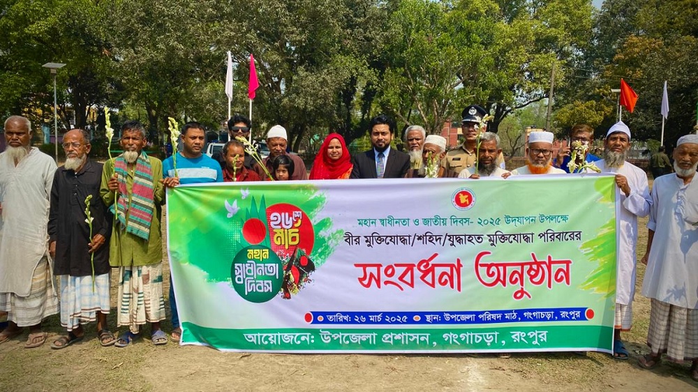 বিভিন্ন সময়ে উপজেলা প্রশাসন গণহত্যা দিবস স্বীকৃতি ও স্মৃতিস্তম্ভ নির্মাণের আশ্বাস প্রদান করার প্রেক্ষিতে আজ ২৬শে মার্চ মহান স্বাধীনতা ও জাতীয় দিবস ২০২৫-এ শহিদ পরিবারগুলোকে আমন্ত্রণ ও ফুলেল সংবর্ধনা প্রধান করেন গঙ্গাচড়া উপজেলা নির্বাহী অফিসার জনাব মাহমুদ হাসান মৃধা। এ সময় উপস্থিত ছিলেন সহকারী কমিশনার (ভূমি) জনাব জান্নাতুল ফেরদৌস উর্মি, গঙ্গাচড়া মডেল থানার অফিসার ইনচার্জ জনাব আল এমরান, উপজেলা সমাজসেবা অফিসার জনাব মোসাদ্দেকুর রহমান। মহান স্বাধীনতা দিবসে-২০২৫ এ আমন্ত্রণ পেয়ে কৃতজ্ঞতা প্রকাশ করেছেন শহিদ পরিবারের সদস্যরা।