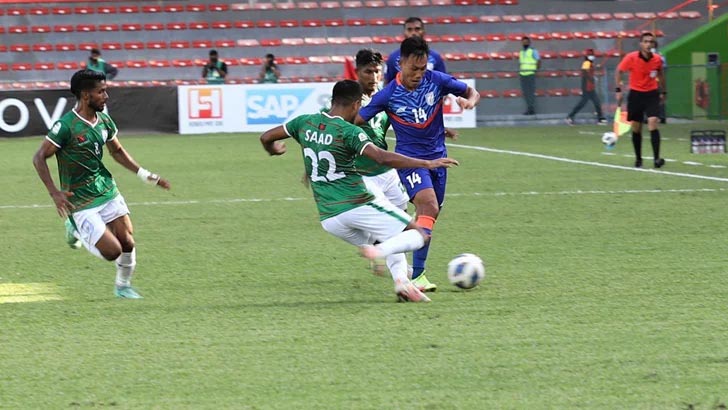 সাফ চ্যাম্পিয়নশিপে নিজেদের দ্বিতীয় ম্যাচে শক্তিশালী ভারতের সাথে ১-১ ড্র করেছে বাংলাদেশ। সোমবার মালদ্বীপের রাজধানী মালে জাতীয় ফুটবল স্টেডিয়ামে বিকাল ৫টায় ম্যাচটি শুরু হয়।