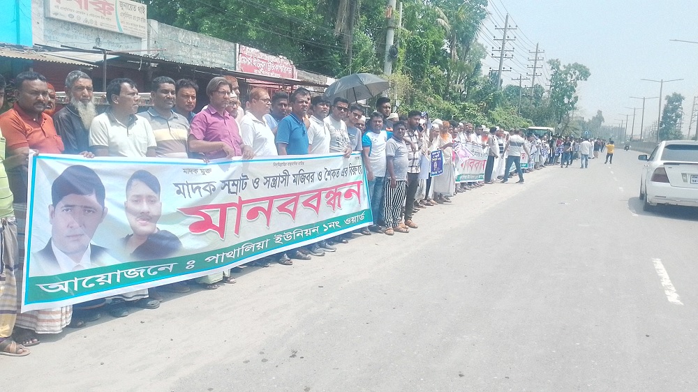 স্থানীয় সূত্রে জানা যায়, পাথালিয়া ইউনিয়নের খেজুরটেক এলাকার মজিবর রহমান ও তার ছেলে সামিউল আলম শৈকত এলাকায় মাদক ব্যবসার পাশাপাশি চাঁদাবাজি এবং নিরীহ মানুষকে হয়রানির অভিযোগে কুখ্যাতি অর্জন করে। তাদের বিরুদ্ধে বহুবার পুলিশে অভিযোগ করা হলেও অজানা কারণে কোনো ব্যবস্থা নেওয়া হয়নি বলে মানববন্ধন থেকে দাবি করেন বাসিন্দারা।
