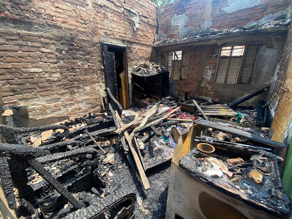 পারভেজ আহমেদ, কমলগঞ্জ (মৌলভীবাজার) প্রতিনিধি : মৌলভীবাজারের কমলগঞ্জ উপজেলায় ভয়াবহ অগ্নিকাণ্ডে একটি বসতঘরের ৩টি রুম পুড়ে ছাই হয়ে গেছে। এতে নগদ টাকা, স্বর্ণালংকার, আসবাবসহ ১২ লাখ টাকার মালামাল ভস্মীভূত হয়েছে। আগুনের সূত্রপাত কি ভাবে ঘটেছে তা নিশ্চিত করতে পারেনি ক্ষতিগ্রস্ত পরিবার। এসময় আগুনে দগ্ধ হয়ে গুরুতর আহত হয়েছেন বসতঘরের মালিক দুরুদ মিয়া ও আবুল কালাম।