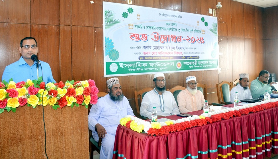 খুলনার প্রতিনিধি: খুলনা জেলার সরকারি-বেসরকারি ব্যবস্থাপনায় হজযাত্রীদের তিন দিনব্যাপী প্রশিক্ষণের উদ্বোধন অনুষ্ঠান মঙ্গলবার সকালে খুলনা বিভাগীয় ইসলামিক ফাউন্ডেশনের মিলনায়তনে অনুষ্ঠিত হয়। প্রশিক্ষণে প্রধান অতিথি ছিলেন খুলনার জেলা প্রশাসক মোহাম্মদ সাইফুল ইসলাম। তিন দিনব্যাপী প্রশিক্ষণে প্রায় এক হাজার দুইশত হজযাত্রী অংশ নেবেন।