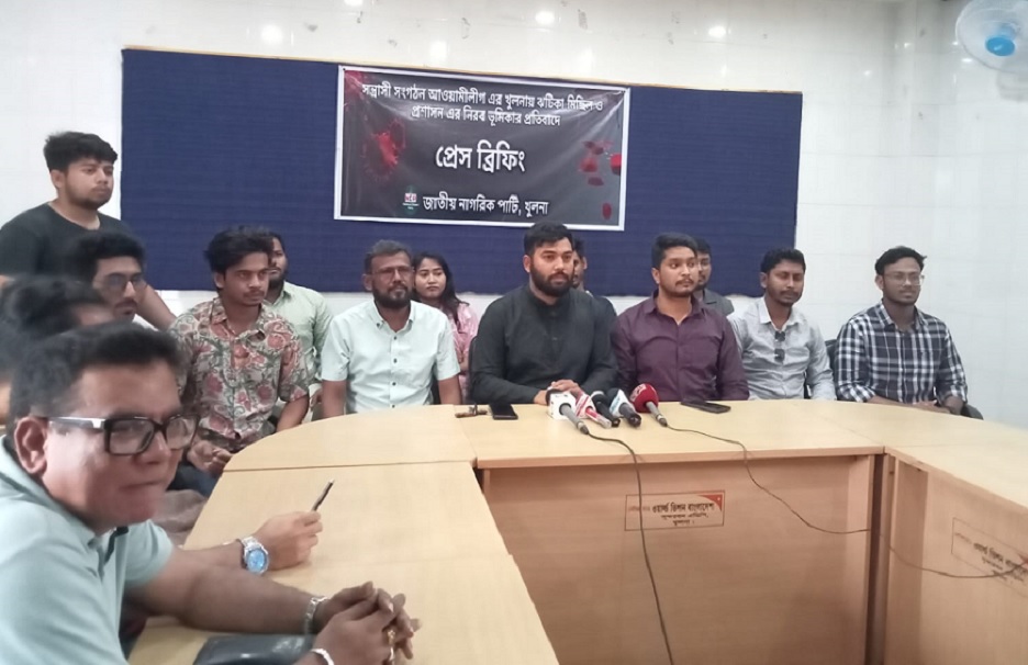 খুলনায় বিভিন্নস্থানে আওয়ামীলীগের ঝটিকা মিছিল করায় প্রশাসনের নিরব ভূমিকার প্রতিবাদ করেছে নাগরিক পার্টি (এনসিপি) খুলনার নেতৃবৃন্দ। এছাড়া আগামী ২৪ ঘন্টার মধ্যে মিছিলে অংশগ্রহণকারীদের গ্রেপ্তারের দাবি জানানো হয়। রোববার (২০ এপ্রিল) বিকাল সাড়ে তিনটায় খুলনা প্রেসক্লাবে আয়োজিত এক সংবাদ সম্মেলনে এ দাবি জানানো হয়।