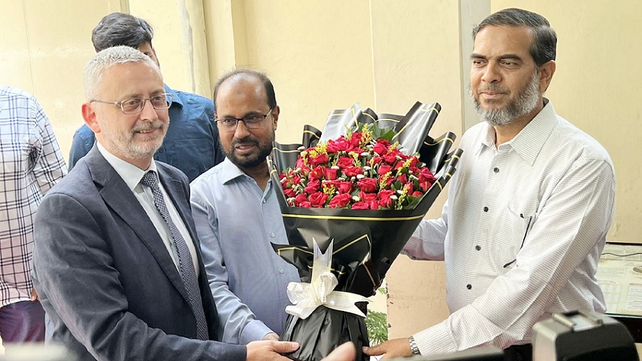 বাংলাদেশ জামায়াতে ইসলামীর আমির ডা. শফিকুর রহমানের সঙ্গে সৌজন্য সাক্ষাৎ করতে দলের কেন্দ্রীয় কার্যালয়ে গিয়েছেন ইউরোপীয় ইউনিয়নের (ইইউ) রাষ্ট্রদূত মাইকেল মিলার।