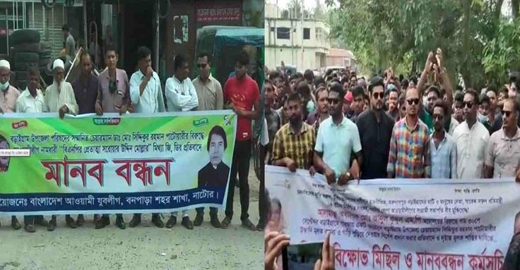 বৃহস্পতিবার সকাল থেকে বড়াইগ্রাম উপজেলার বনপাড়া, থানা মোড়সহ বিভিন্ন স্থানে পরস্পরের বিরুদ্ধে বিক্ষোভ ও মানববন্ধন করে সংসদ সদস্য আব্দুল কুদ্দুস ও উপজেলা চেয়ারম্যান ডা. সিদ্দিকুর রহমান পাটোয়ারির গ্রুপ।