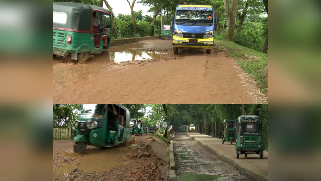 খানাখন্দে ভরা সড়কে ঝুঁকি নিয়ে চলাচল করতে হচ্ছে যাত্রীদের। বিশেষ করে শিক্ষার্থী, পর্যটক, স্থানীয়দের বেহাল সড়ক দিয়ে যাতায়াতে প্রতিনিয়ত দুর্ভোগ পোহাতে হচ্ছে।। চরম ঝুঁকি নিয়ে যাতায়াত করছেন চালক ও যাত্রীরা।