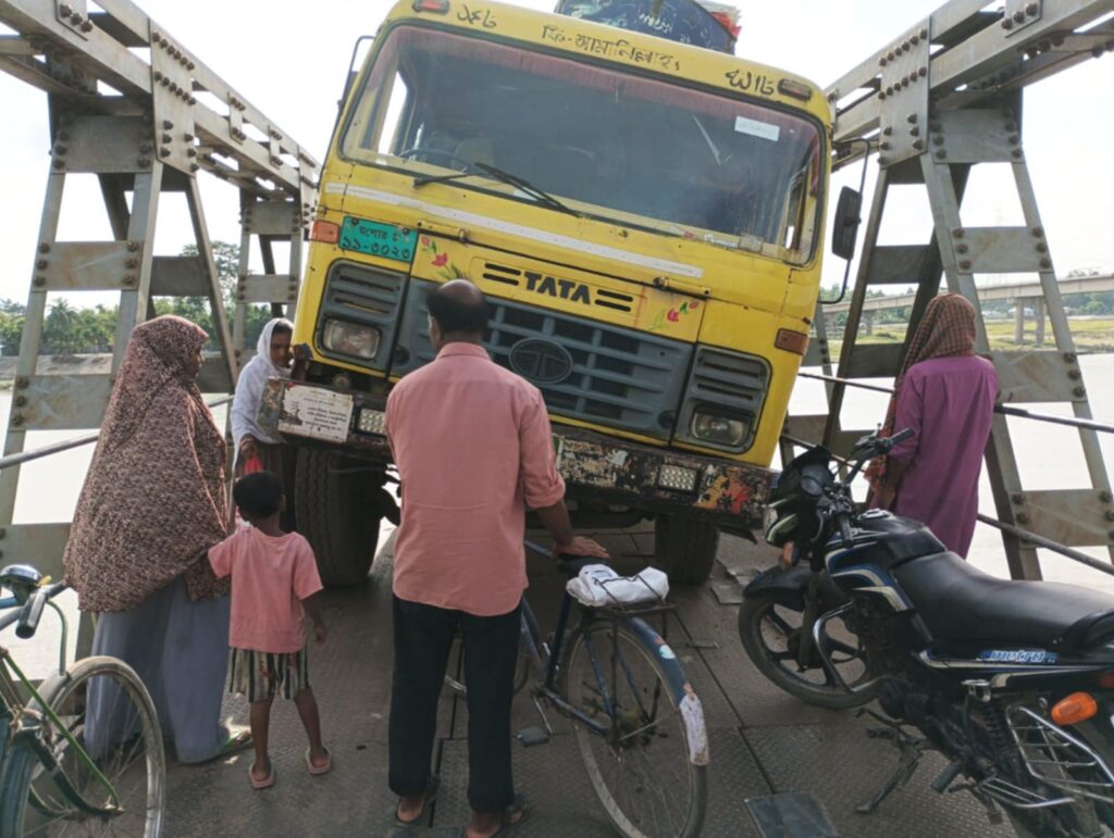 শনিবার ভোর রাত তিনটার দিকে পাথর বোঝাই একটি ট্রাক পাটাতনের ফাঁকে আটকে গেলে এ সমস্যার সৃষ্টি হয়।