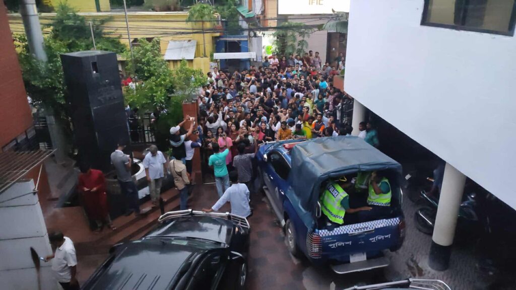 খুলনা সদর থানার ভারপ্রাপ্ত কর্মকর্তা (ওসি) হাওলাদার সানওয়ার হুসাইন মাসুম বলেন, ‘আন্দোলনকারীরা স্যারের [প্রেস সচিব] সঙ্গে কথা বলার জন্য অবস্থান করছিল। স্যার সময় দেওয়ায় তারা প্রেস ক্লাবের দ্বিতীয় তলায় কথা বলছেন। পরিস্থিতি শান্ত এখন হয়েছে।’