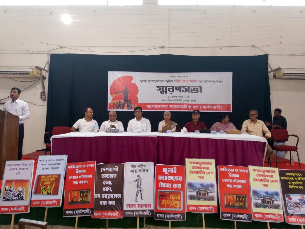 বাসদ (মার্কসবাদী)’র উদ্যোগে আবু সাঈদের মৃত্যুদিবসে শহীদদের স্মরণে স্মরণসভা অনুষ্ঠিত