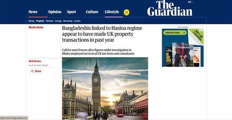 ব্রিটিশ সংবাদমাধ্যম দ্য গার্ডিয়ান ও দুর্নীতিবিরোধী সংস্থা ট্রান্সপারেন্সি ইন্টারন্যাশনালের যৌথ অনুসন্ধানে জানা গেছে, গণঅভ্যুত্থানে শেখ হাসিনা পতনের পর ক্ষমতাচ্যুত সরকারের প্রভাবশালী ব্যক্তিরা যুক্তরাজ্যে থাকা সম্পদ স্থানান্তরের চেষ্টা করছেন।