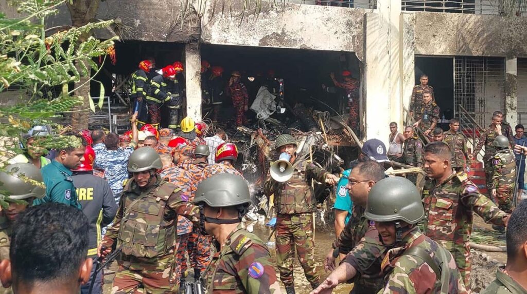 সোমবার (২১ জুলাই) দুপুরে বিমান বিধ্বস্ত হলে এর ধ্বংসাবশেষ নিচে ছিটকে পড়ায় বহু মানুষ দগ্ধ হন।
