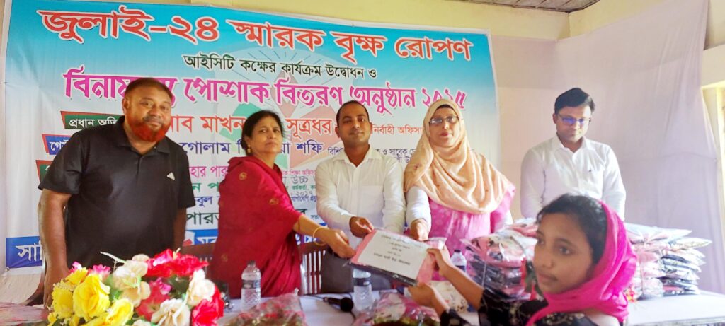সোমবার(২১ জুলাই)দুপুরে বিদ্যালয়ের হল রুমে বিদ্যালয়ের পক্ষ থেকে শিক্ষার্থীদের মাঝে বিনামূল্যে স্কুল ড্রেস বিতরণ করা হয়।