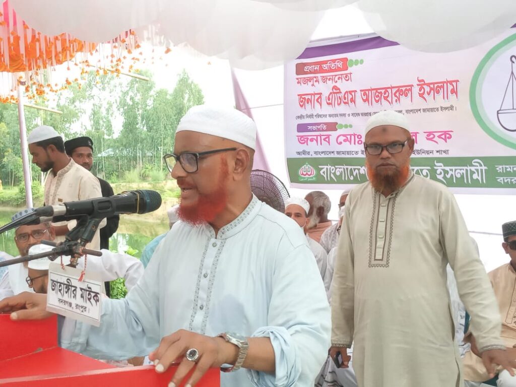 বদরগঞ্জ উপজেলার রামনাথপুর ইউনিয়ন জামায়াতে ইসলামীর আমীর মোহাম্মদ শামসুল হক সমাবেশে সভাপতিত্বে করেন। সমাবেশে বিশেষ অতিথি ছিলেন বাংলাদেশ জামায়াতে ইসলামীর কেন্দ্রীয় মজলিসে শুরা সদস্য ও রংপুর জেলা আমীর অধ্যাপক মুহাম্মদ গোলাম রব্বানী। সমাবেশে অন্যান্যের মদ্যে বক্তব্য রাখেন বদরগঞ্জ উপজেলা জামায়াতে ইসলামীর আমীর মাওলানা কামরুজ্জামান কবির, জেলা জামায়াতের কর্মপরিষদ সদস্য মাওলানা আব্দুল হান্নান খান, উপজেলা নায়েবে আমীর শাহ্ মুহাম্মদ রুস্তম আলী, সেক্রেটারী মুহাম্মদ মিনহাজুল ইসলাম, রামনাথপুর ইউনিয়ন সেক্রেটারী মোহাম্মদ জয়নাল আবেদীন প্রমুখ। বাংলাদেশ জামায়াতে ইসলামীর নির্বাহি পরিষদ সদস্য মজলুম জননেতা এটিএম আজহারুল ইসলাম বলেছেন যারা দুনীতি করে দেশ ছেড়ে পালিয়ে গেছে তারা কখনও দেশের মানুষের বন্ধু ছিল না এবং আগামীতেও হতে পারবে না । আগামী নির্বাচনে দেশ প্রেমিক দলকে ভোট দিয়ে ক্ষমতায় আনার তিনি আহবান জানান। তিনি বলেন, এই সেই ঝাড়–য়ার বিল বদ্ধভুমি। ১৯৭১ সালে পাক হানাদার বাহিনী এখানে গন হত্যা চালিয়েছিল পাক হানাদার বাহিনীর সেই অপরাধের দায় এ টি এম আজাহারুল ইসলামের উপর চাপিয়ে ৭ কিলোমিটার দুর থেকে দেখা স্বাক্ষীদের মিথ্যা সাক্ষ্য দিয়েছিল।
