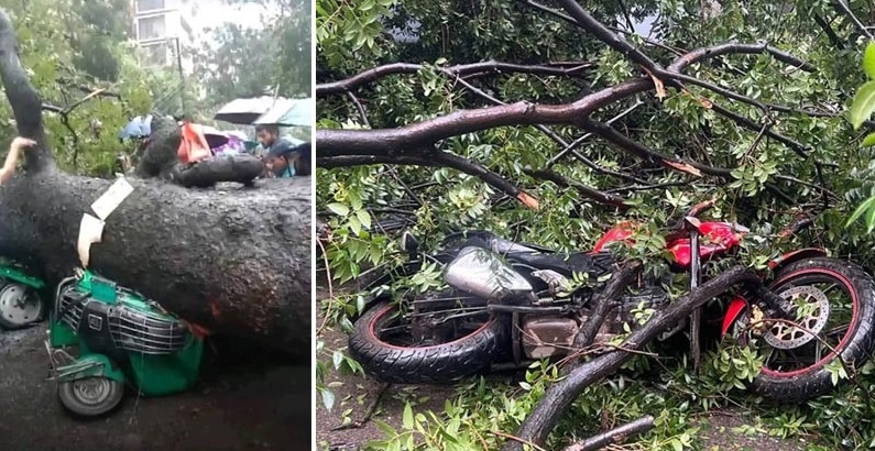 রাজধানীর ধানমন্ডির ৬ নম্বর সড়কে বিশাল আকৃতির একটি গাছ উপড়ে সড়কে থাকা কয়েকটি গাড়ির ওপর পড়েছে। এতে একটি প্রাইভেট কার, দুটি সিএনজিচালিত অটোরিকশা, একটি ব্যাটারিচালিত রিকশা ও একটি মোটরসাইকেল ব্যাপকভাবে ক্ষতিগ্রস্ত হয়েছে।