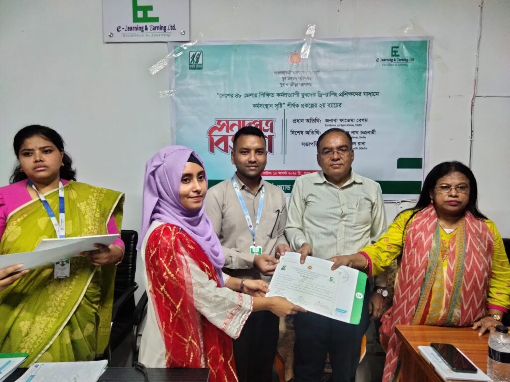 ইলার্নিং এন্ড আর্নিং লিমিটেড জেলার কো-অর্ডিনেটর মো: জুয়েল রানা এর সভাপতিত্বে সনদপত্র বিতরণ অনুষ্ঠানে বক্তব্য রাখেন, জেলা যুব উন্নয়ন অধিদপ্তরের সহকারী পরিচালক রথীন্দ্র নাথ চক্রবর্তী, ই-লার্নিং এন্ড আর্নিং লিমিটেড জেলা শাখার সহকারী কো-অর্ডিনেটর তৌহিদুর রহমান, ট্রেইনার (ডিজিটাল মার্কেটিং) অমিত মন্ডল, (ওয়েব ডেভেলপমেন্ট ও গ্রাফিক্স ডিজাইন) ট্রেইনার মাহবুবুর রহমান প্রমুখ।