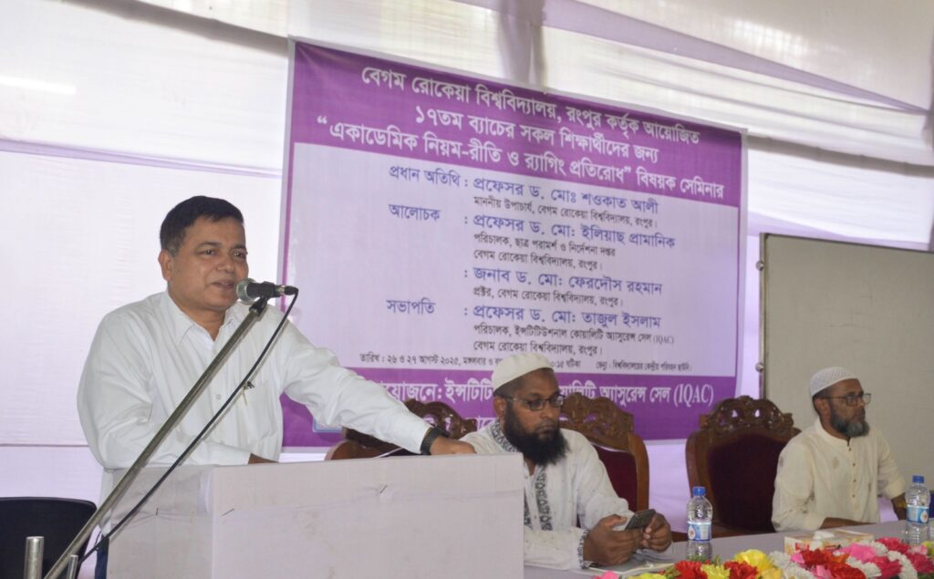 বেগম রোকেয়া বিশ্ববিদ্যালয় (বেরোবি) ১৭তম ব্যাচের নবীন শিক্ষার্থীদের জন্য ‘একাডেমিক নিয়ম-রীতি ও র‌্যাগিং প্রতিরোধ’ বিষয়ক সেমিনার অনুষ্ঠিত হয়েছে।