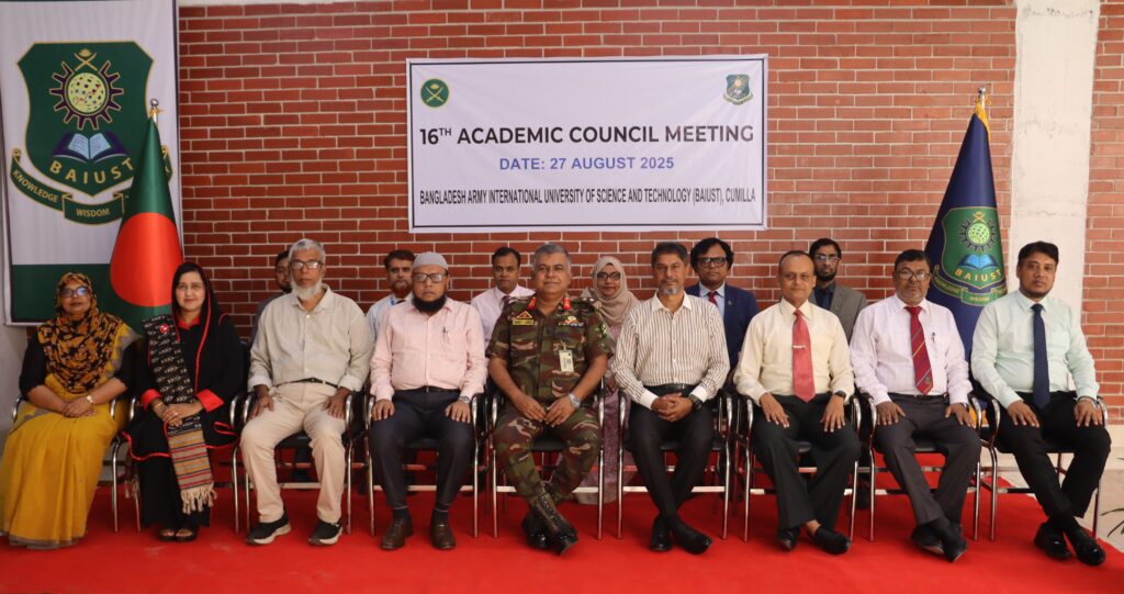 বাংলাদেশ আর্মি ইন্টারন্যাশনাল ইউনিভার্সিটি অব সায়েন্স এন্ড টেকনোলজি (বাইউস্ট)-এর ১৬তম একাডেমিক কাউন্সিল সভা অনুষ্ঠিত হয়েছে। বুধবার ২৭ আগস্ট ২০২৫ সকাল ১০:০০ ঘটিকায় বিশ্ববিদ্যালয়ের সম্মেলনকক্ষে এই সভা অনুষ্ঠিত হয়।