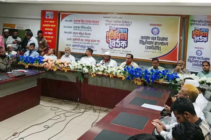 জাতীয় প্রেসক্লাবে এ বৈঠকের আয়োজন করে ফোরাম অব ডিপ্লোমা ইঞ্জিনিয়ার্স বাংলাদেশ।