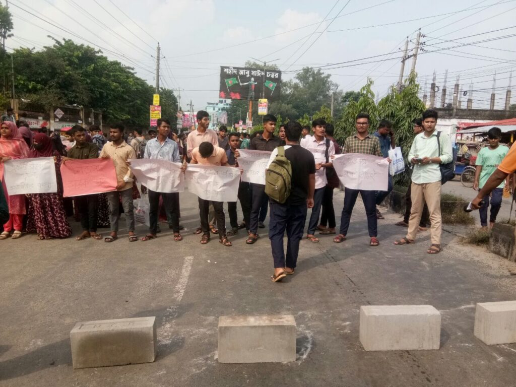 সোমবার (৮ সেপ্টেম্বর) বিশ্ববিদ্যালয়ের আবু সাঈদ গেইটের সামনে দুপুর ২ টার দিকে সড়ক অবরোধ করে সাধারণ শিক্ষার্থীরা।