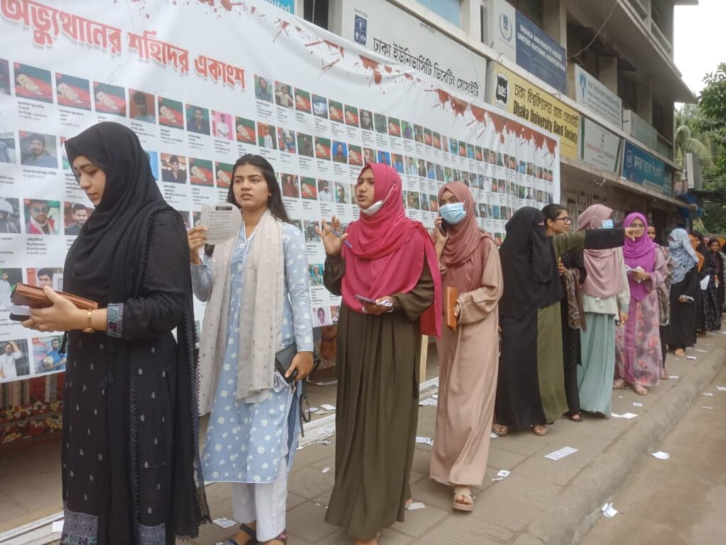 ডাকসু নির্বাচন : নারী ভোটকেন্দ্রে লম্বা লাইন