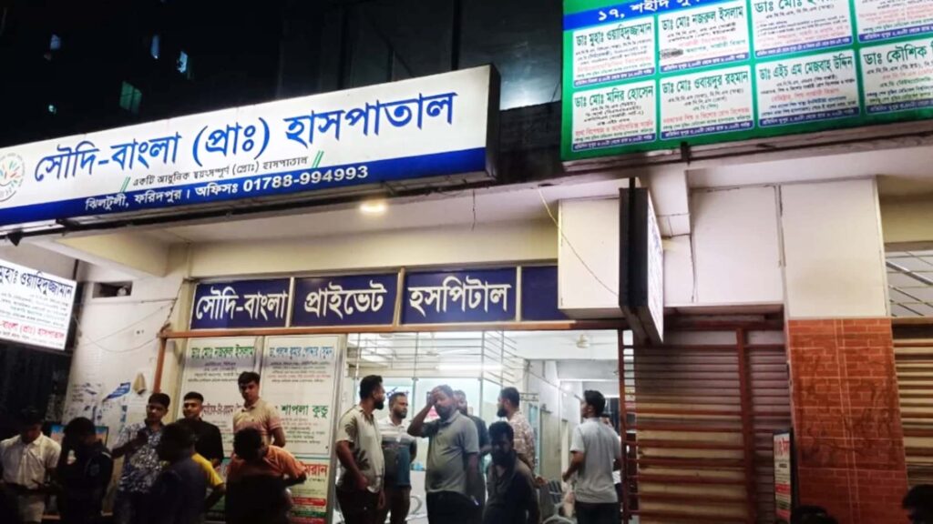 সোমবার (৮ সেপ্টেম্বর) দিবাগত রাতে ফরিদপুর শহরের ঝিলটুলী এলাকার শহীদ সুফি সড়কের সৌদি-বাংলা প্রাইভেট হাসপাতালে এ ঘটনা ঘটে।