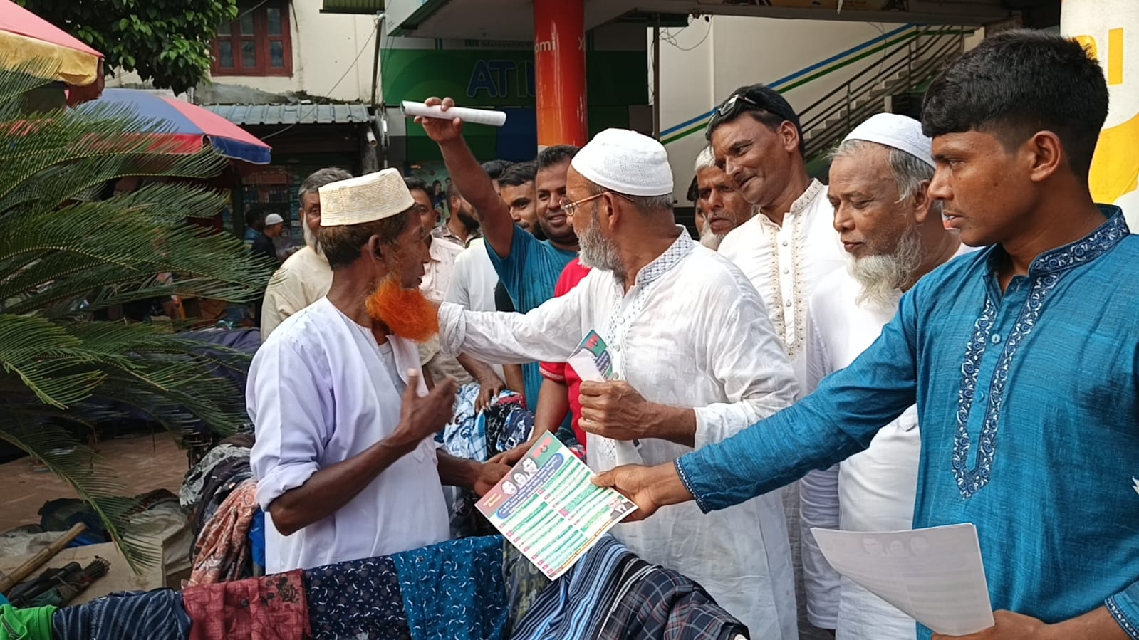 সাপাহারে ৩১ দফা বাস্তবায়নে গণসংযোগ ও লিফলেট বিতরণ