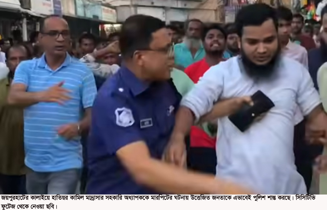 জয়পুরহাটের কালাইয়ে হাতিয়র কামিল মাদ্রাসায় ফাজিল পরীক্ষার প্রবেশপত্র নিয়ে তর্কের জেরে ওই মাদ্রাসার আরবি বিভাগের সহকারি অধ্যাপক মাওলানা সেলিম রেজাকে বেধরক মারপিট করেছে এক নারী শিক্ষার্থীর স্বামী ও ভাসুর। এ খবর বাহিরে ছড়িয়ে পড়লে উত্তেজিত জনতা ওই শিক্ষার্থীর স্বামী ও দেবরকে তাদের ব্যবসা প্রতিষ্ঠানে