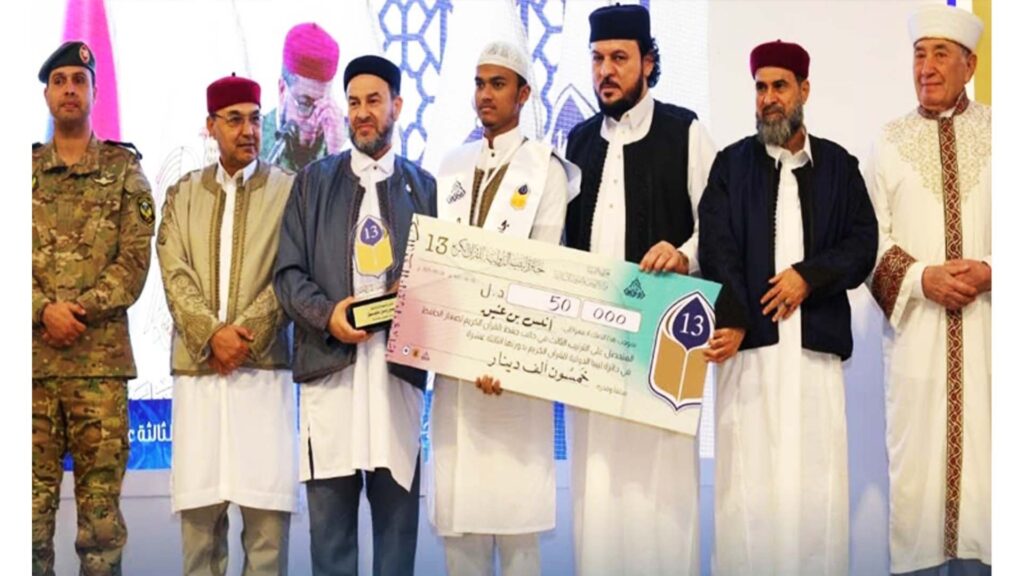লিবিয়ার বেনগাজিতে অনুষ্ঠিত ১৩তম আন্তর্জাতিক হিফজুল কোরআন প্রতিযোগিতা ২০২৫-এ বাংলাদেশের প্রতিনিধি হাফেজ আনাস বিন আতিক তৃতীয় স্থান অর্জন করে দেশকে গৌরবান্বিত করেছেন।