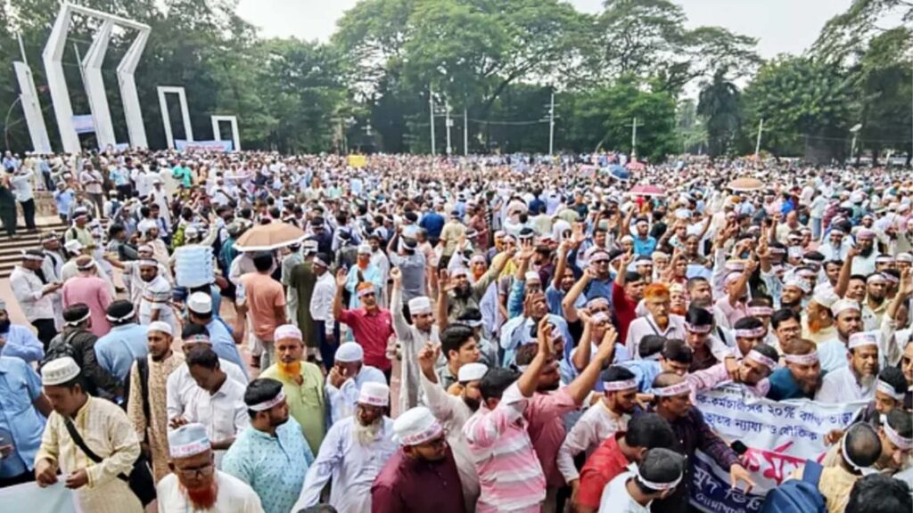আজ সকালে কেন্দ্রীয় শহীদ মিনার প্রাঙ্গণে হাজারো শিক্ষক-কর্মচারীর অবস্থান দেখা যায়। তাদের তিন দফা দাবি হলো—