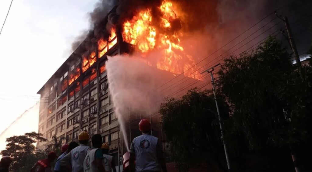 বৃহস্পতিবার (১৬ অক্টোবর) দুপুর ২টার দিকে আটতলা এই ভবনে আগুন লাগে। সন্ধ্যা সাড়ে ৬টা পর্যন্ত আগুন নেভাতে ফায়ার সার্ভিস, নৌবাহিনী ও বিমানবাহিনীর সদস্যরা যৌথভাবে কাজ করে যাচ্ছেন।