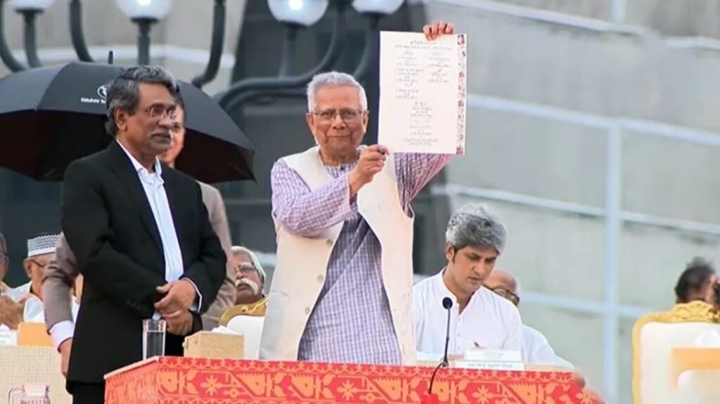 প্রথমে রাজনৈতিক দলগুলোর প্রতিনিধিরা স্বাক্ষর করেন। এরপর প্রধান উপদেষ্টা ও জাতীয় ঐকমত্য কমিশনের সভাপতি অধ্যাপক ড. মুহাম্মদ ইউনূস আনুষ্ঠানিকভাবে সনদে স্বাক্ষর করেন।