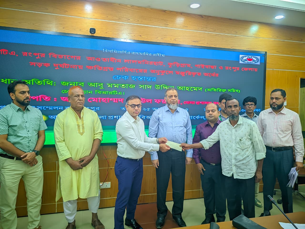 বিআরটিএ রংপুর বিভাগের আওতাধীন লালমনিরহাট, কুড়িগ্রাম, গাইবান্ধা ও রংপুর জেলায় সড়ক দুর্ঘটনায় ক্ষতিগ্রস্ত ৪৫ পরিবারের মাঝে মোট ১ কোটি ৯৭ লক্ষ টাকার চেক হস্তান্তর করেছে বিআরটিএ রংপুর সার্কেল।
