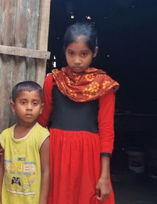 প্রায় পাঁচ বছর আগে স্ট্রোক করে মারা গেছে বাবা । সেই শোক কাটতে না কাটতে মারা গেলেন মা। বাবা-মাকে হারিয়ে দিশেহারা হয়ে পরে তাদের দুই শিশু সন্তান। বড় সন্তান মেয়ে,নাম মরিয়ম খাতুন,বয়স ৯ বছর। মরিয়ম গ্রামের প্রাথমিক বিদ্যালয়ে চতুর্থ শেণিতে পড়ে। ছোট সন্তান ছেলে,নাম ইসমাইল হোসেন,বয়স ৬ বছর। সে একই বিদ্যালয়ে প্রাক-প্রাথমিক এ ভর্তি হয়েছে । ছোট ভাইয়ের দায়িত্বকাঁধে নিয়ে সংসারের হাল ধরেছে বড় বোন শিশু মরিয়ম। ছোট ভাইয়ের খাওয়া-দাওয়া,লেখা-পড়া,রাতে ঘুম পাড়ানো সব কিছুই মরিয়ম করছে। ঘটনাটি পাবনা জেলার ভাঙ্গুড়া উপজেলার খানমরিচ ইউনিয়নের মাদারবাড়িয়া গ্রামের।
