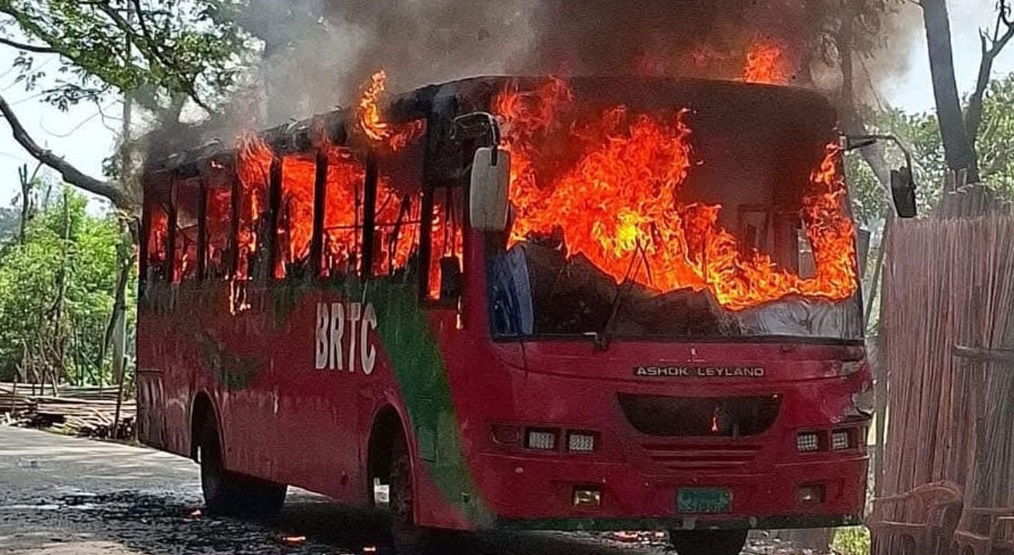 যাত্রীবাহী চলন্ত বাসে অগ্নিকাণ্ড, অল্পের জন্য প্রাণে বাঁচলেন ৩০ যাত্রী