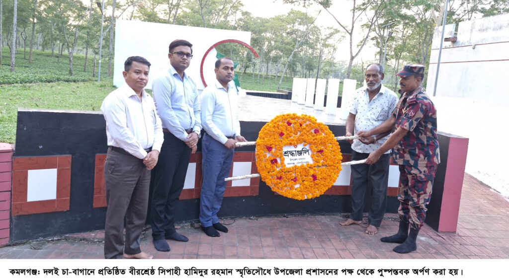 কমলগঞ্জে বীরশ্রেষ্ঠ শহীদ সিপাহী হামিদুর রহমানের ৫৪তম শাহাদাৎ বার্ষিকী পালিত হয়েছে। ১৯৭১ সালের ২৮ অক্টোবর কমলগঞ্জ উপজেলার দলাই সীমান্তে পাক হানাদার বাহিনীর সঙ্গে সম্মুখযুদ্ধে তিনি শহীদ হন। এ উপলক্ষে মঙ্গলবার দুপুরে উপজেলার মাধবপুর ইউনিয়নের দলই সীমান্তে স্মৃতিসৌধে ফুল দিয়ে শ্রদ্ধা নিবেদন ও দোয়া মাহফিল করেছে উপজেলা প্রশাসন।