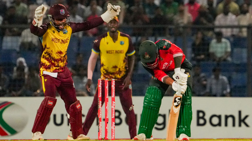 টস হেরে আগে ব্যাট করতে নেমে ক্যারিবীয়রা নির্ধারিত ২০ ওভারে ১৪৯ রান তোলে। বোলারদের নিয়ন্ত্রিত বোলিংয়ে ওয়েস্ট ইন্ডিজকে বড় স্কোর গড়তে দেয়নি বাংলাদেশ।