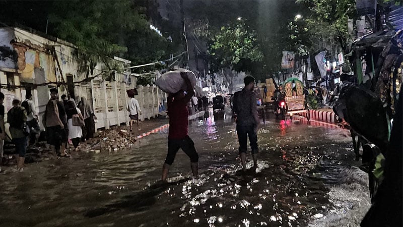 রাজধানীর আকাশে শনিবার বিকেল থেকেই জমতে থাকে ঘন কালো মেঘ। সন্ধ্যার পরপরই নামে মুষলধারে বৃষ্টি। একটানা বৃষ্টিতে রাজধানীর বিভিন্ন এলাকায় দেখা দেয় জলজট, সৃষ্টি হয় চরম ভোগান্তির।