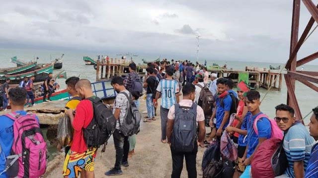 সমুদ্র বন্দরগুলোতে ৩ নম্বর এবং নদী বন্দরগুলোতে দেখাতে বলা হয়েছে ১ নম্বর সতর্কতা সংকেত। কক্সবাজারেও উত্তাল সাগর আর ঝড়ো হাওয়াসহ বৃষ্টিপাত হচ্ছে। বৈরী আবহাওয়ার কারণে গত রোববার থেকে টেকনাফ-সেন্টমার্টিন নৌ-রুটে সার্ভিস বোট চলাচল বন্ধ করা হয়েছে। এতে আটক পড়েছে সেন্টমার্টিনে বেড়াতে যাওয়া প্রায় তিন শতাধিক পর্যটক। সেন্টমার্টিনের সি প্রবাল রিসোর্টে ওঠা পর্যটক সিলেটের হবিগঞ্জ এলাকার মো. আল-আমীন তালুকদার বলেন, গত ১৫ অক্টোবর পরিবার নিয়ে সেন্টমার্টিন বেড়াতে এসেছি। সোমবার (১৮ অক্টোবর) রাতের ট্রেনে সিলেট ফিরে যাওয়া টিকিট করা ছিল। কিন্তু গত রোববার থেকে সার্ভিস বোট বন্ধ থাকায় সেন্টমার্টিনেই আটকে আছি। ঠিক সময়ে ফিরতে না পারায় বাজেটের টাকায় টান পড়ে। তবে ইউনিয়ন আওয়ামী লীগ সভাপতি ও অন্যরা থাকা খাওয়ায় কোনো সমস্যা হবে না বলে অভয় দিয়েছেন। ট্রেনের টিকিট লস ছাড়া তেমন কোনো সমস্যা নেই। গত শুক্রবার চার সহকর্মী নিয়ে সেন্টমার্টিন দ্বীপে বেড়াতে যাওয়া কিশোরগঞ্জের এনজিওকর্মী এনামুল হক বলেন, গত রোববার আমাদের ফিরে যাওয়ার কথা ছিল। কিন্তু বোট না চলায় ফিরতে পারিনি। আমাদের মতো বিভিন্ন হোটেলে প্রায় ৩ শতাধিক পর্যটক অবস্থান করছেন। সেন্টমার্টিন ইউনিয়ন আওয়ামী লীগের সভাপতি মুজিবুর রহমান জানান, প্রতিবছর বর্ষা মৌসুমে অনেকে নিজস্ব নিরাপত্তায় সেন্টমার্টিন আসেন। এবারও সেই ধারাবাহিকতা অব্যাহত রয়েছে। ১৫ দিন আগে থেকেই সেন্টমার্টিন দ্বীপের নিয়মিত সার্ভিস বোটে (কাঠের ট্রলার) অনেক পর্যটক বেড়াতে আসছেন। এখন সেন্টমার্টিন দ্বীপে ৩০০-৩৩০ জন পর্যটক রয়েছেন। বৈরী আবহাওয়ার কারণে গত রোববার থেকে সার্ভিস বোট চলাচল বন্ধ থাকায় শিডিউল থাকলেও অনেকে ফিরে যেতে পারেননি। সেন্টমার্টিনের সি প্রবাল রিসোর্টের মালিক আবদুল মালেক জানান, জাহাজ চলাচল বন্ধ থাকলেও পর্যটকরা নিজস্ব নিরাপত্তায় স্পিডবোট ও ট্রলারে করে সেন্টমার্টিন এসেছেন। কিন্তু আবহাওয়া বৈরী হওয়ায় সেন্টমার্টিন থেকে কোনো ট্রলার বা স্পিডবোট ছেড়ে যেতে দেয়নি কোস্টগার্ড। রিসোর্টে অবস্থান করা পর্যটকরা নিরাপদে রয়েছেন বলে জানান তিনি। কোস্টগার্ড পূর্ব জোনের সেন্টমার্টিন স্টেশনের এক কর্মকর্তা নাম প্রকাশ না করার শর্তে জানান, হোটেল ও এলাকার জনপ্রতিনিধিদের বরাতে জানতে পেরেছেন ২৫০-৩৩০ জনের মতো পর্যটক দ্বীপে অবস্থান করছেন। বৈরী আবহাওয়া কেটে পরিস্থিতি স্বাভাবিক হলে তাদের টেকনাফে পাঠানো হবে। টেকনাফ উপজেলা নির্বাহী কর্মকর্তা (ইউএনও) পারভেজ চৌধুরী বলেন, মৌসুম না হলেও নিজস্ব নিরাপত্তায় কয়েকশ পর্যটক সেন্টমার্টিন গেছেন বলে খবর পেয়েছি। বৈরী আবহাওয়ায় আটকা পড়ার পরই এটি প্রচার পেয়েছে। আমরা পর