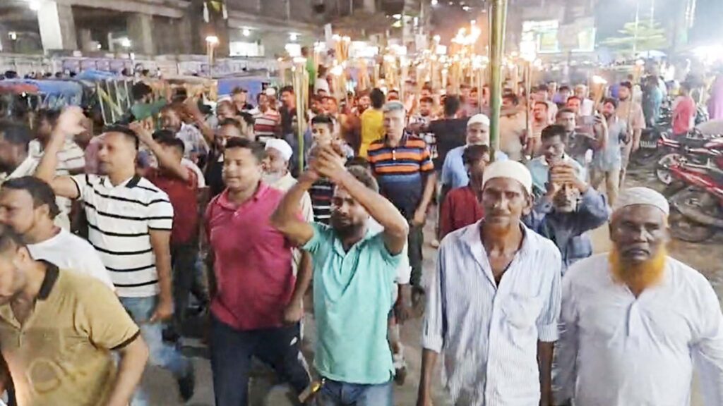 সন্ধ্যা মাগরিবের নামাজের পর ধর্মসাগর পাড়ে দলীয় কার্যালয়ের সামনে থেকে শত শত নেতাকর্মী ও সমর্থক হাতে মশাল নিয়ে মিছিল শুরু করেন। পরে মিছিলটি নগরীর প্রধান প্রধান সড়ক প্রদক্ষিণ করে। এ সময় কান্দিরপাড়সহ আশপাশের এলাকায় যান চলাচল বন্ধ হয়ে যায়।