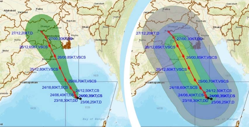 পূর্ব-মধ্য বঙ্গোপসাগর এবং এর কাছাকাছি এলাকায় অবস্থানরত গভীর নিম্নচাপটি ঘনীভূত হয়ে একই এলাকায় ঘূর্ণিঝড় ‘যশ’-এ পরিণত হয়েছে। এছাড়া সমুদ্র বন্দরগুলোকে ২ নম্বর দূরবর্তী হুঁশিয়ারি সংকেত দেখিয়ে যেতে বলা হয়েছে।