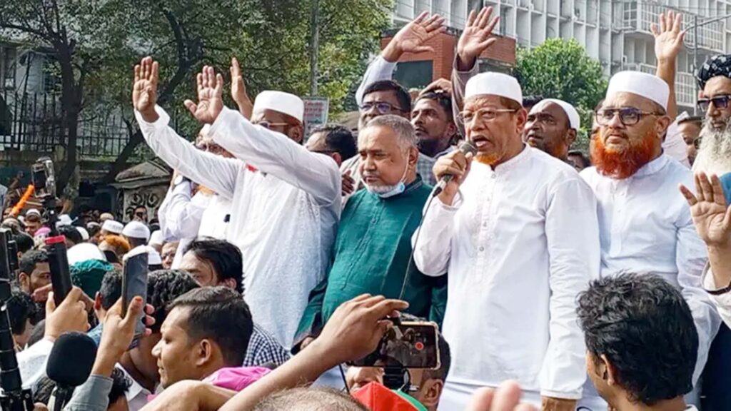 এর আগে সমাবেশে ইসলামী আন্দোলনের যুগ্ম মহাসচিব ও মুখপাত্র মাওলানা গাজী আতাউর রহমান বলেন, সরকার আমাদের রাস্তায় নামতে বাধ্য করেছে। ১০ তারিখের মধ্যে দাবি না মানা হলে ১১ তারিখে ঢাকা অচল করে দেওয়া হবে। আগে গণভোট ছাড়া জাতীয় নির্বাচন হতে দেওয়া হবে না, প্রয়োজনে নির্বাচন দুই মাস পিছিয়ে দিতে হবে।