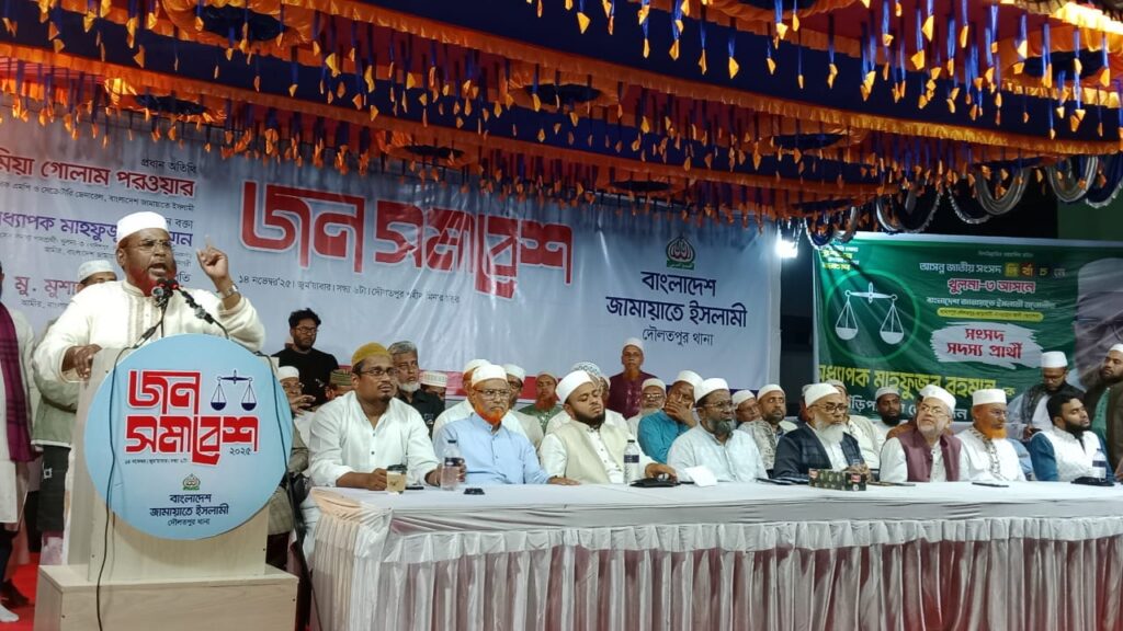 একই দিনে গণভোট আর জাতীয় নির্বাচন দেওয়ায় জনগণকে সংকটে ফেলে দেওয়া হয়েছে, ঘোষণা সংশোধন করে জাতীয় নির্বাচন এর আগে গনভোট দিন, জনগণের মতামতই হবে সরকারের ভিত্তি। তিনি বলেন, আগামী ২৬ সালের জাতীয় নির্বাচনের আইনি কোন ভিত্তি নেই। সংবিধানে প্রতি পাঁচ বছর অন্তর অন্তর নির্বাচন হওয়ার কথা আছে। সর্বশেষ নির্বাচন হয়েছে ২০২৪ সালে। সংবিধানের অনেক ধারা এবং অনেক অনুচ্ছেদে অকার্যকর হয়ে পড়েছে। সেখানে প্রধান উপদেষ্টা কিভাবে অন্তবর্তীকালীন সরকারের প্রধান হয়েছেন তাও সংবিধানের নেই। বাংলাদেশের সংবিধানের অন্তবর্তীকালীন সরকারের কোন বিধান নেই। সুপ্রিম কোর্টের একটি রেফারেন্স এর ভিত্তিতে এই সরকার ক্ষমতা গ্রহণ করেছেন। কিন্তু এই রেফারেন্সে কখনো ক্ষমতা গ্রহণের ভিত্তি হতে পারে না। সেই কারণে বর্তমান অন্তবর্তীকালীন সরকার যেমন সংবিধানে নেই, নির্বাচনের মেয়াদ সংবিধানে নেই। প্রধান উপদেষ্টা সংবিধানে নেই। সুতরাং জুলাই সনদ একমাত্র সংবিধানের অংশ হতে পারে আর এর মাধ্যমেই সকল বিষয়কে আইনি ভিত্তি দেওয়া যেতে পারে। শুক্রবার (১৪ নভেম্বর) সন্ধ্যায় খুলনা-৩ আসনের দৌলতপুর থানাধীন শহীদ মিনার চত্বরে দৌলতপুর থানা জামায়াতে ইসলামীর উদ্যোগে জন সমাবেশে প্রধান অতিথির বক্তৃতায় তিনি এ সব কথা বলেন।