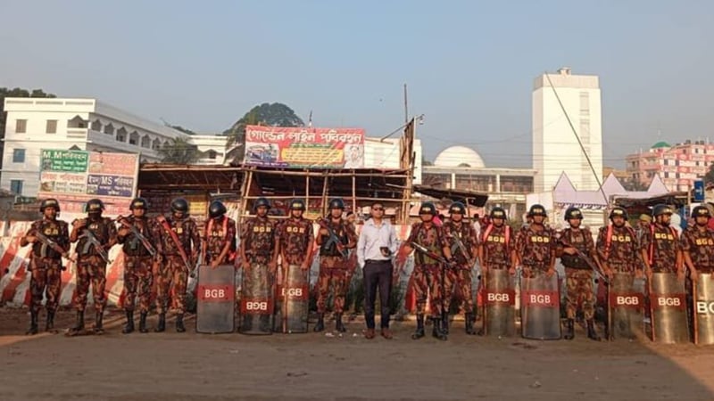 রাজধানী ঢাকাসহ চার জেলায় সার্বিক নিরাপত্তা নিশ্চিত ও আইনশৃঙ্খলা পরিস্থিতি নিয়ন্ত্রণে বর্ডার গার্ড বাংলাদেশ (বিজিবি) মোতায়েন করা হয়েছে। ঢাকার পাশাপাশি গোপালগঞ্জ, ফরিদপুর ও মাদারীপুরে অতিরিক্ত সতর্কতামূলক দায়িত্ব পালন করছে বাহিনীটি।