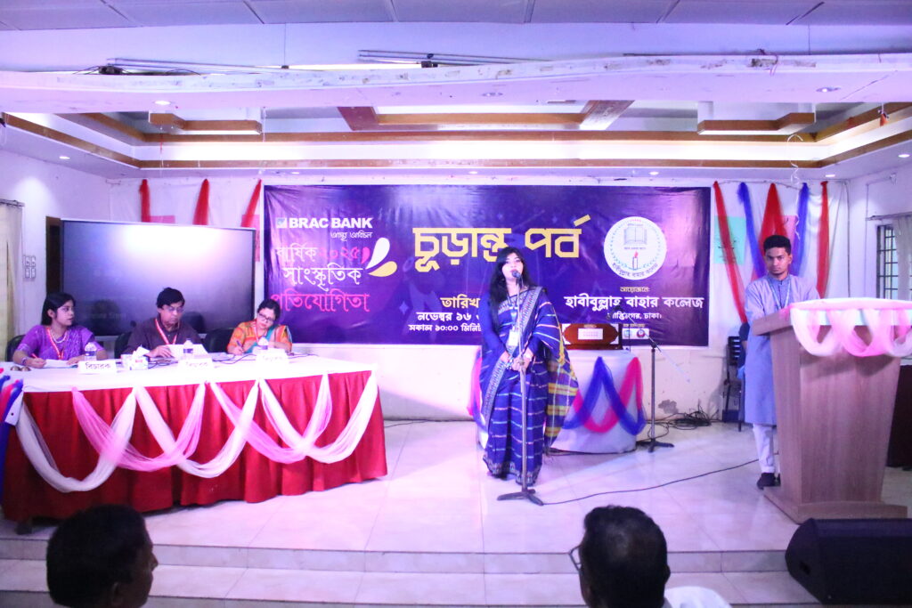 হাবীবুল্লাহ বাহার কলেজে শুরু হয়েছে বার্ষিক সাংস্কৃতিক প্রতিযোগিতা–২০২৫ এর চূড়ান্ত পর্ব। প্রায় দুই সপ্তাহব্যাপী প্রস্তুতি ও অডিশন প্রক্রিয়া শেষে ১৬ এবং ১৮ নভেম্বর, সকাল ১০ টা থেকে দুপুর সাড়ে ৩ টা পর্যন্ত; কলেজ মিলনায়তনে অনুষ্ঠিত হচ্ছে বিভিন্ন বিভাগের ফাইনাল প্রতিযোগিতা।