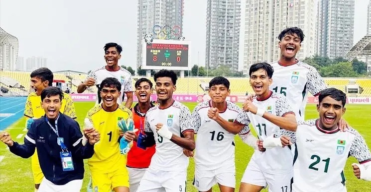 চীনে চলমান এএফসি অনূর্ধ্ব-১৭ এশিয়ান কাপ বাছাইপর্বে বাংলাদেশের কিশোর ফুটবল দল আরও এক বড় জয় তুলে নিল। সোমবার, বাংলাদেশ ব্রুনাই দারুসসালামের বিরুদ্ধে ৮-০ গোলের দারুণ জয় অর্জন করেছে।